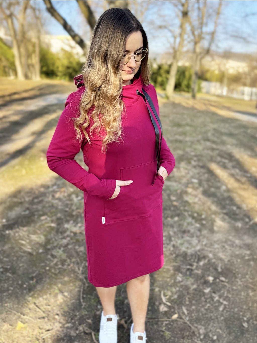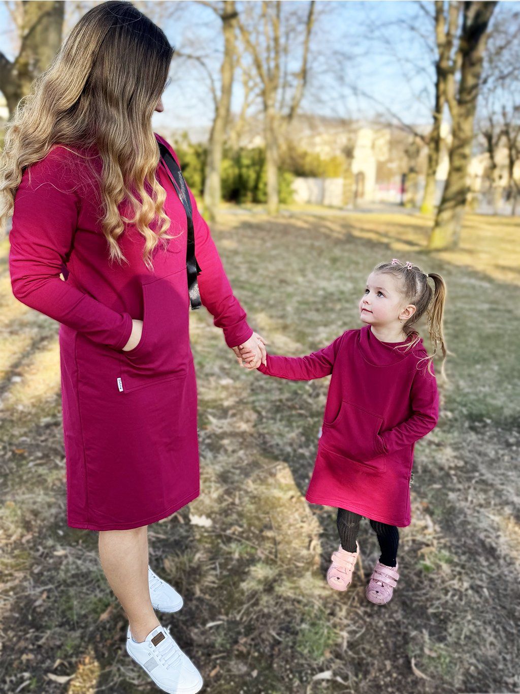 Dámské matchy vínové mikinošaty VÍNOVÁ
