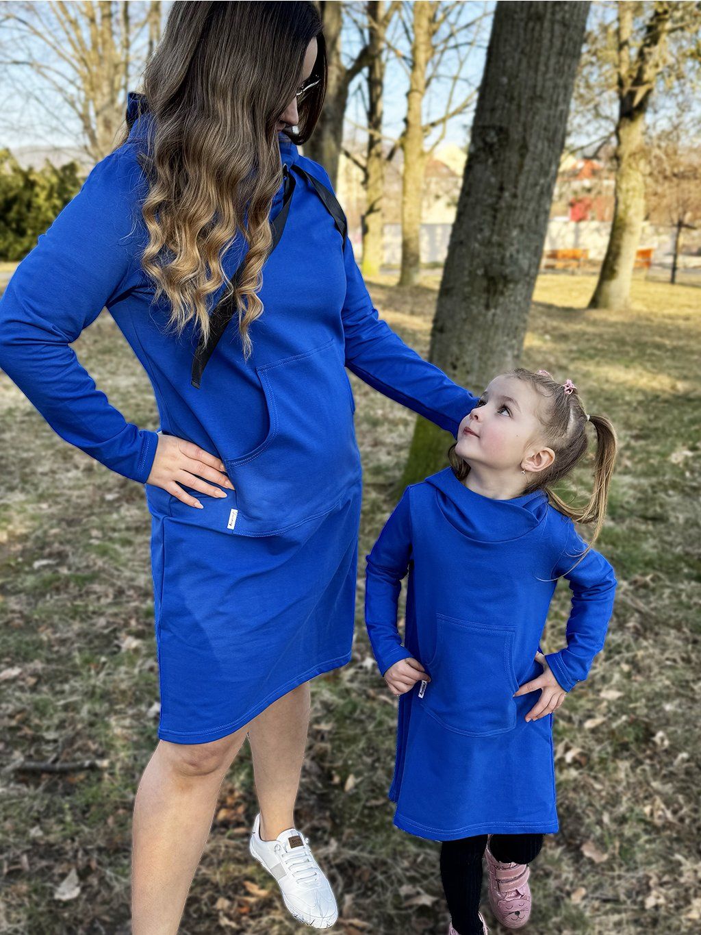 Dívčí matchy královsky modré mikinošaty KRÁLOVSKY MODRÁ